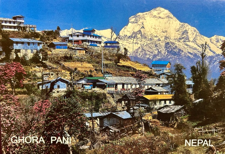 The Annapurna View Tea House in Tadapani was not so nice as Sakura Tea House. And it was cold! In the dining area a wood fire was burning in a large can to provide warmth. We sat by the fire all afternoon and played rummy. Song, dance, sharing our stories, and card games would become our regular after-dark activities. Strong friendships were built during those hours.