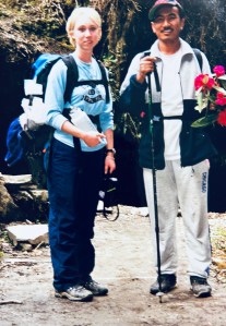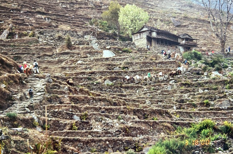 After tea and breakfast we hit the trail and arrived in Nangethanti in time for lunch at the Christian owned teahouse where we were housed the week before. They cooked us a yummy lunch that included chicken curry and we hungrily devoured every bite.