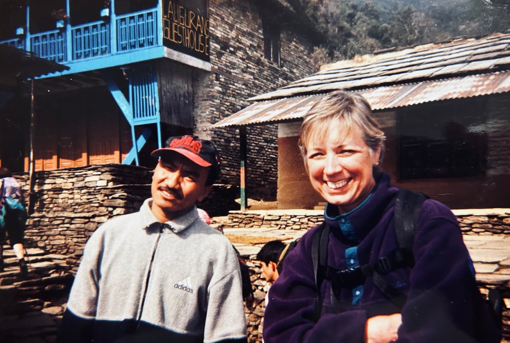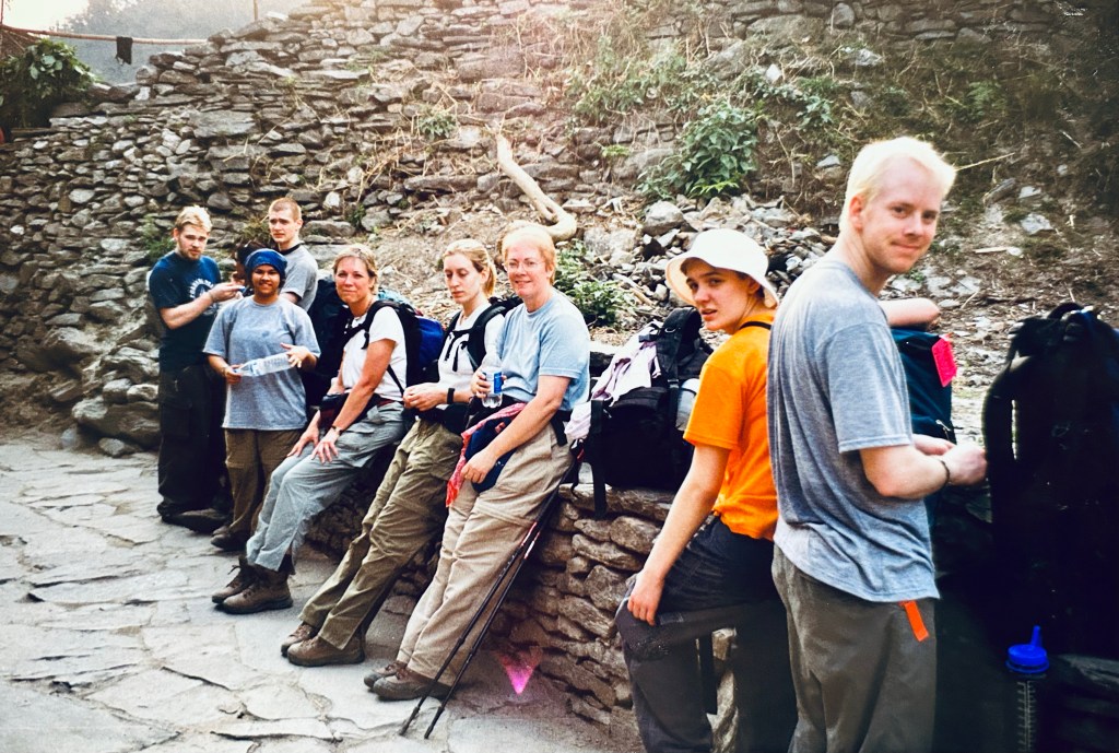 After lunch we trekked down to Banthanti and again settled into Hotel Trekking. It was wet and cold and we spent the evening huddled around the fire built in a metal vessel (a bit like a fire pit) that was situated in the open air dining room. As we sat around visiting Daniel G. shared his dream of starting a training center for pastors in the villages of Nepal. (Katie’s heart was stirred and her church would be a part of helping get Daniel’s center off the ground.)