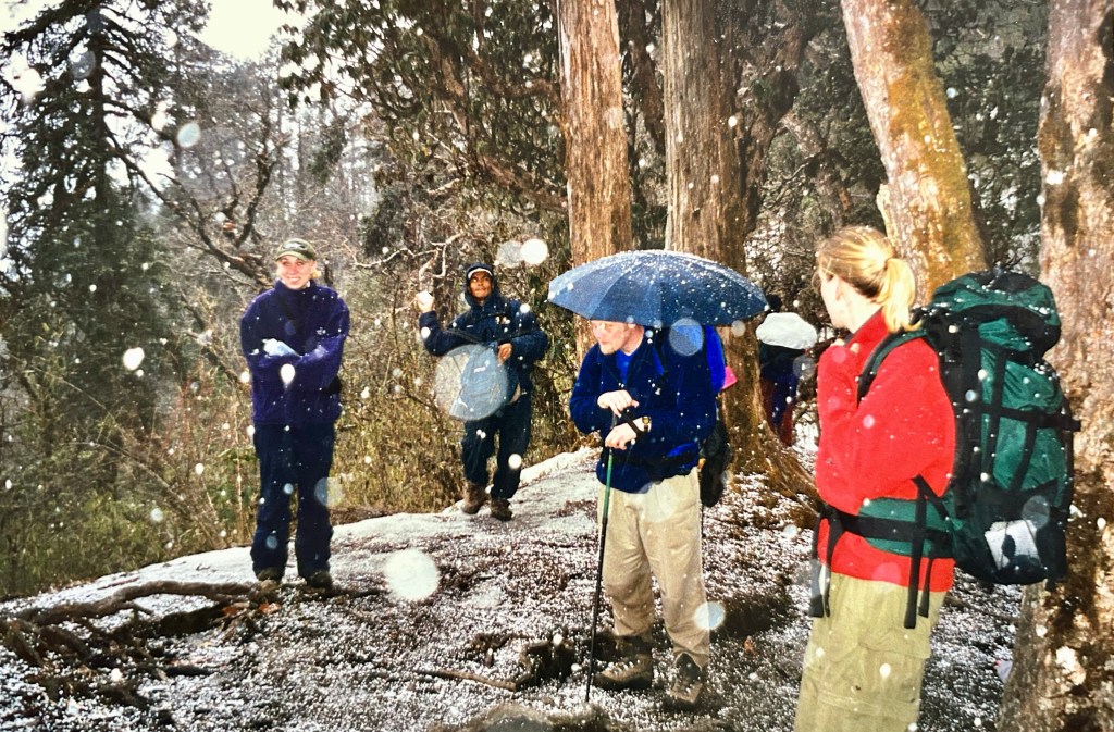As a day’s walk progresses and people are feeling tired they begin asking Robby, “How much farther?” Anyone who has trekked with Robby will know his standard response, “In ten minutes we will be closer.” An hour later the response will be the same. Tuesday was a hard day for me physically. I was not struggling with lack of oxygen but my legs were gone. Around midday Daniel L kindly took my pack and carried it on his front as well as the one he was carrying on his back. That helped me so much! A strange thing happens when one has carried a backpack for a long period of time and then puts it down. There is a bizarre lightness, the sensation of standing on your legs disappears and it literally feels like floating. Although I didn’t actually float my afternoon journey was then so much more enjoyable.
