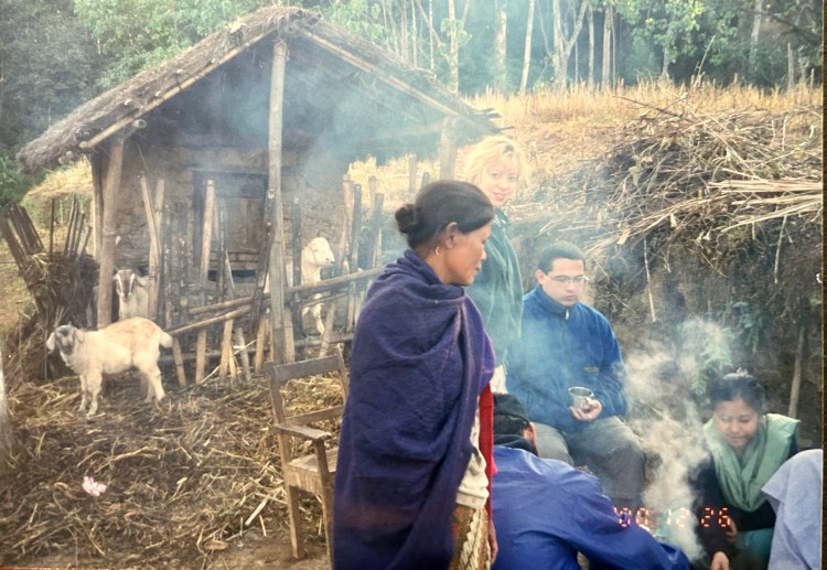 That evening they presented us with a delicious Nepali feast. We ate sitting on logs facing the cooking fires. All of the neighbors had come to observe the foreigners. They stood with the family in a line behind the cooking fires. The children were very amazed. They adults were saying, “How do they live? They eat like birds!” We were saying, “I feel like we are at the theater and the movie is us!” It was a wonderfully hilarious experience!
