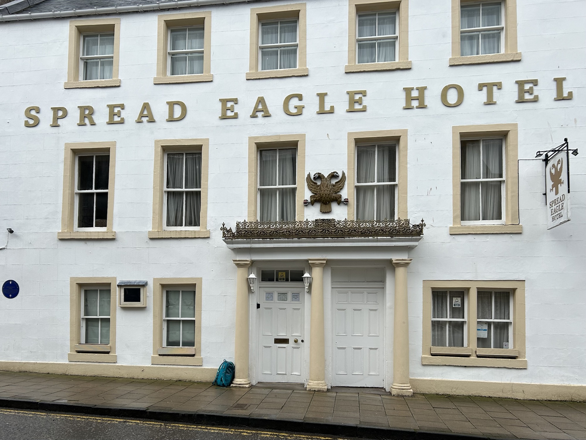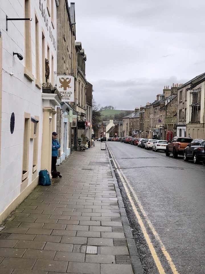 Next morning my legs were still weak, so after reserving a room at The Spread Eagle Hotel in Jedburgh we opted to call a taxi for the next stretch. Jedburgh is three miles off the pilgrimage route but is a highly recommended stop because of its incredibly well preserved abby, whose construction began in the 1100s. Arriving fairly early, we discovered that in Scotland hotels are often locked up between checkout time and check in time which is normally 4:00 pm. There was much to see and we didn’t want to be carrying our packs around all day. Thankfully we were able to contact the owner who came and let us drop our bags in the hotel. While waiting out front, to my delight, we noticed that there was an Indian restaurant across the street from the hotel.