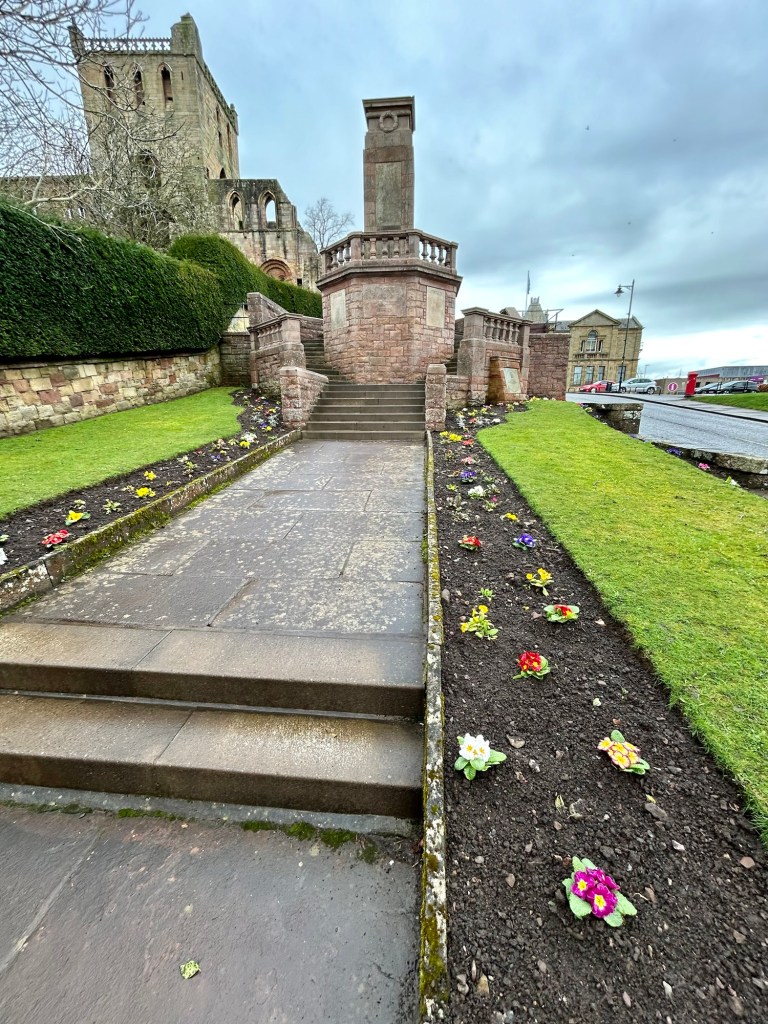 Jedburgh is a lovely town with numerous interesting sites including Jedburgh Castle Jail and Museum and the tower house where it is believed that Mary, Queen of Scots, stayed for a short time. Jedburgh Abby was top of our list and we headed straight there. It did not disappoint! The inside of the cathedral was being repaired and therefore blocked off, but the grounds were beautiful and abundant signage provided much information about the usage of all the various areas as well as the history of the abby and early Christianity in the area. The gardens were lovely and we especially enjoyed sitting for a while in the prayer garden. Inside the office and gift shop was a small museum also providing much information as well as some ancient relics.
