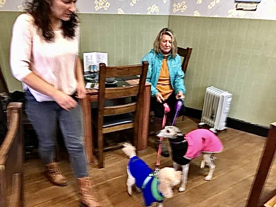 Mid-afternoon coffee and a snack were in order, however the tea and coffee shops were packed as “afternoon tea” is still a big thing in Great Britain. A table was vacant in a tiny bakery where the coffee and huge, freshly baked scones and jam were just what I was craving. It is there that we discovered the love of Scots for their dogs and the wonderful custom of taking them everywhere, even into restaurants. At most every stop on our trek we were blessed with the joy of puppy love while we dined.