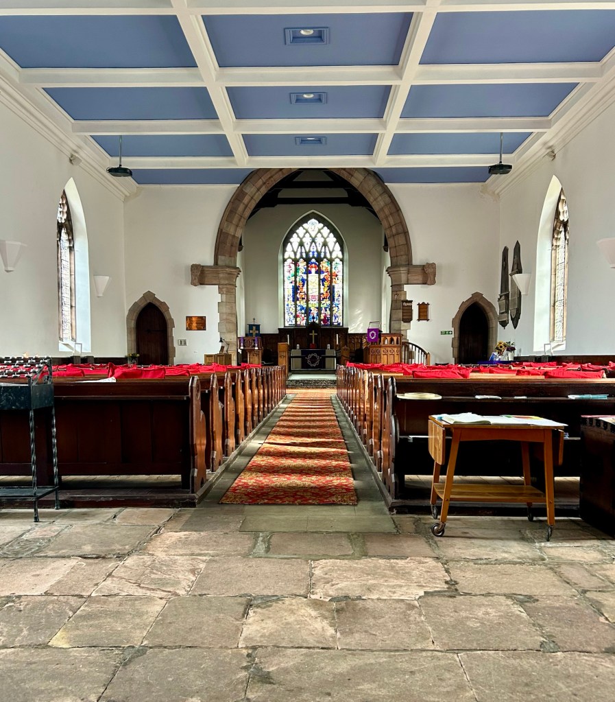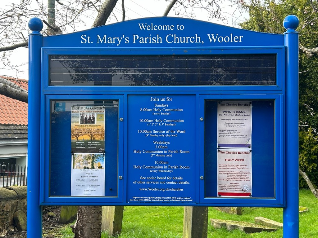 The drive to Wooler was beautiful and it is beginning to sound cliche’ but everywhere we went was gorgeous and after a while words run out. We crossed the border from Scottish Borders, Scotland, into Northumberland, England, for the final segments of St. Cuthbert’s Way. To our surprise while the landscape remained the same in England, the people and culture, including accent, changed immediately. Julie wrote, “It’s like crossing state lines here. Immediately the accent and phrases changed. I much prefer the Scottish speech to the English. My favorite is that every Scot greets you with How ya’. (pronounced Hi ya)” This leg of the pilgrimage is the most difficult to walk because it climbs into the Cheviot Hills. We traveled by car but I have read that some of the ascents are quite steep.