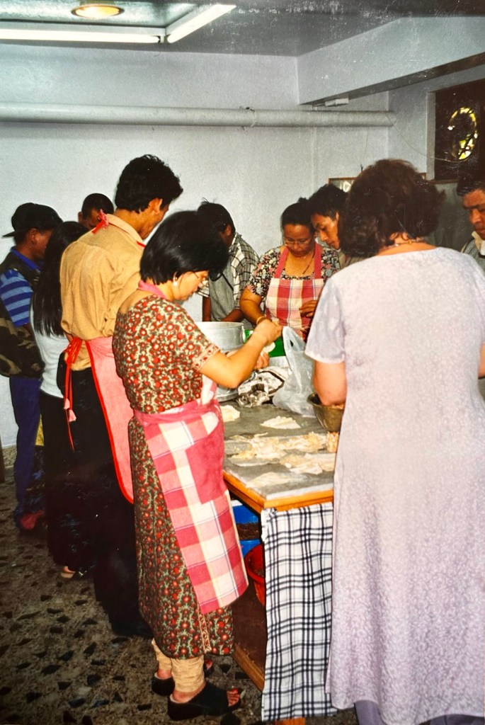 Leona had offered to help a friend open a momo restaurant. (Momo is the Tibetan/Nepali version of a steamed dumpling and they are absolutely, amazingly delicious.) I helped out with a number of chores from sweeping floors and cleaning the bathroom to arranging tables and chairs to hanging pictures on the walls, to peeling garlic, ginger, and onions. The grand opening of Melange MoMo was at 6:00 pm Sunday, June 23. Culturally the grand opening is a celebration for family and friends so it was actually a wonderfully huge party including us foreigners and, as well, church people who came early at 4:00 to pray for the business. I tasted all the varieties of momo along with a bountiful supply of freshly made sauces. They were all luscious. Then as the guests began arriving I moved to the kitchen where I rolled dough and washed dishes.