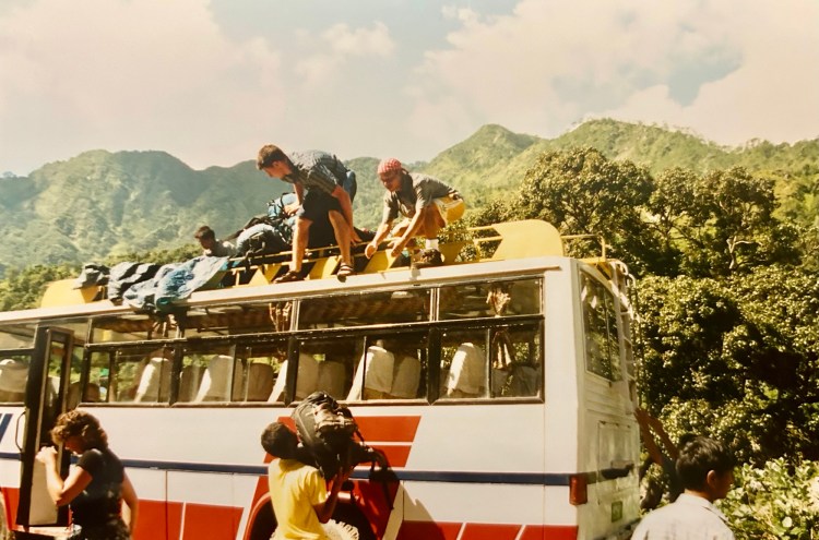 The bus was waiting so we immediately loaded up and headed off towards Pokhara. Exhausted, we all found a seat and settled in to rest. But before anyone could fall into a good sleep the bus stopped. I sat up and looked. Up ahead was a very long line of lories and busses parked on the highway. Robbie got down and walked to the head of the line to see what had happened. He returned to inform us that they were replacing a bridge up ahead and that we would have to wait approximately three days to cross. We were stunned. Our flight home would depart Kathmandu in three days. But what could be done?!