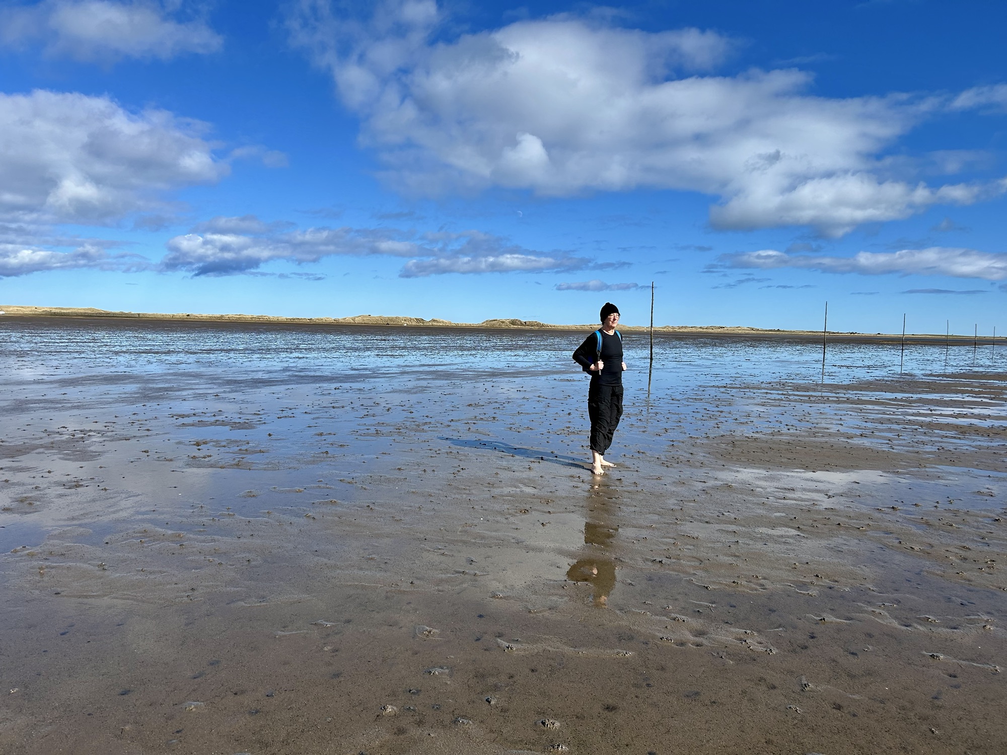 We set off as soon as the tide was out at noon. Much of the walk was on ‘dry’ sand. There was enough sun to keep us warm and it shone dramatically against the clouds. The tide pools were cool but not one bit uncomfortable to our bare feet. The feel of the sand squishing beneath my feet was wonderful. As we walked along we looked for shells and unusual rocks, fully basking in nature and in the presence of the Almighty Who had brought us there. On that stretch I thought much about the Song of Moses — “My Lord, my God, my strength my song has now become my victory!.. The Lord is God and I will praise Him; the Lord is God and I will exalt Him!” (Exodus 5:1-2) and I thought much about Him leading Israel across the Red Sea to freedom. I don’t have words to describe the incredibleness of the experience. It was ethereal. Even now to recount the day my heart beats a little quicker and my eyes fill with tears of joy.