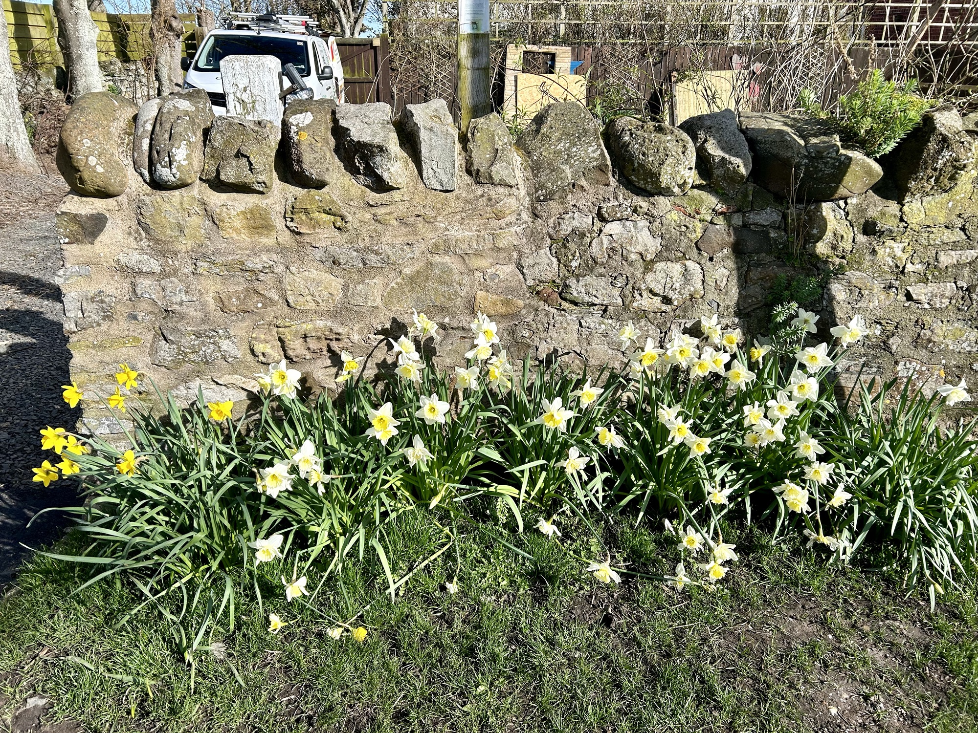 After three days of rain, March 16th had dawned gloriously sunny and remained so until late afternoon. Our day in Kirk Yetholm was wonderful—peaceful and relaxing. While Julie walked the loop of St. Cuthbert’s Way that passes Kirk Yeltham and spent time at a church, I explored the Yetholms, Town Yetholm and Kirk Yetholm. Near our hotel was a sheep pasture filled with beautiful, frolicking lambs. A rushing river divides the two towns and, although it was still winter, spring flowers were coming out everywhere through the rest of the trek. The towns are stunning, ancient-looking and exactly what movies about rural Scotland look like. The cathedrals also were built many years ago and I spent time praying and exploring the one between our hotel and the sheep pasture.
