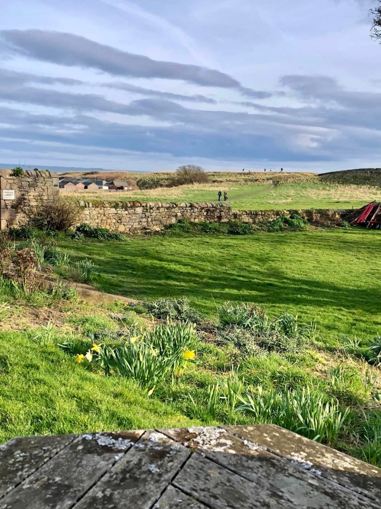 We then headed out to explore. Because it was Sunday all of the shops were locked up tight; there were no sales except food, even the pharmacy was closed till evening. It was super peaceful and in the words of my sister it was “so refreshing”. Julie checked her trails app and found many in the area. So while I prayed and explored the cathedrals and reveled in the extensive gardens outside one church, she decided to hike. “I walked the ancient battle grounds today in Northumberland. I intended to take a short hike, but of course I got off track three times (face palm) and it turned into quite a hike. The scenery was amazing and every step got prettier and prettier. I was on all fours again today because the hill was so steep I was afraid of falling backwards.”