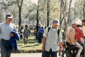 We ladies hopped out of the vehicle and, as you might guess, looked for the rest room. What we found was the most terrifying toilet I have ever, ever seen. But we had no choice. It is pretty easy for men to find a place to go, but for us girls this was the only option. Our toilet consisted of a huge, open-air pit which was several feet deep and at least ten feet in diameter, dug in the ground, and surrounded on three sides by flimsy bamboo “walls.” Lying across the center of the pit about six-inches apart were two strips of four bamboo poles each tied together with hemp rope. The required process involved carefully walking to the middle of the pit, one foot on each of the bamboo strips. Once well over the cesspool below, the idea is to squat and then somehow relax enough to do your business. We girls deliberated for quite some time about whether there might be another option and, after nixing that hope, about whether we could hold it. But anticipation of the two-hour trek ahead negated that idea as well. So we did what we had to do. We formed a wall of women on the open side of the toilet for privacy and one by one took a deep breath and tenaciously ventured out trying not to visualize the very real possibility of where we could end up. Quickly we discovered that not only were the poles round but they were incredibly slippery due to all the previous visitors who had missed. Finally the last person successfully made it back to solid ground and we were all relieved physically as well as emotionally.