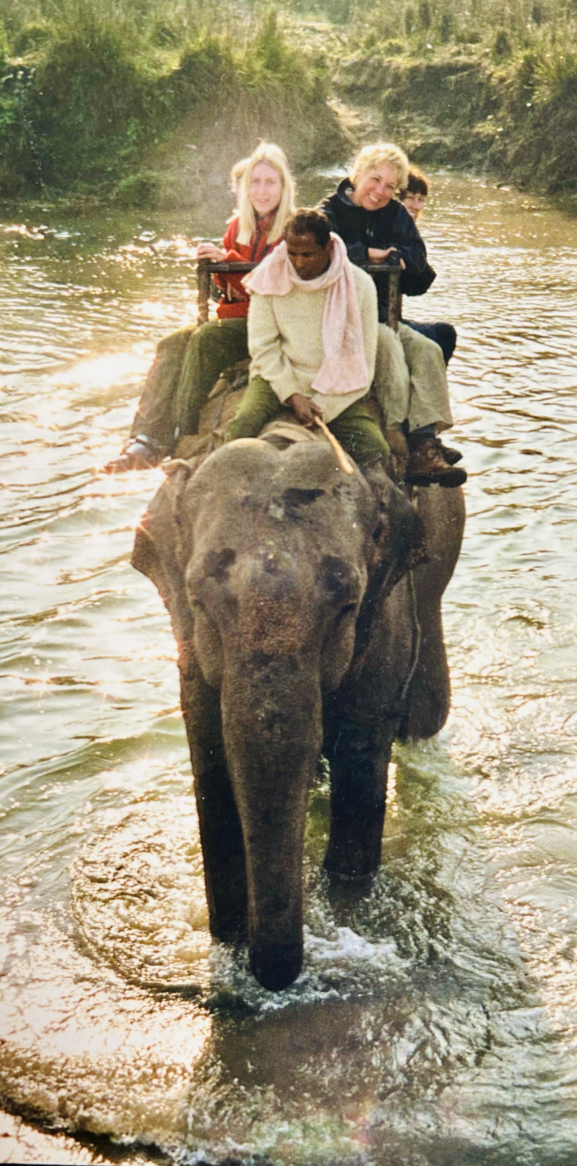 Friday was spent in the car heading southwest to Chitwan National Park, a second visit for me to the jungle region. In the evening we found lodging at a lovely resort with a huge dining area where we were provided bounteous, delicious meals of curried chicken and vegetables and the ever present dal bhat. My second elephant safari greeted us early morning. Thankfully this ride was only an hour and not as exhausting as my previous two-hour adventure had been. Canoe rides on the river provided gharial crocodile viewings. Then after visiting the elephant breeding center we revisited Pastor S and his family. We were pleased to find them and their churches doing well. Once again they hospitably served us tea and biscuits (cookies) as we chatted. After we had prayed for them and their work in the Chitwan area, Pastor S surprised us with gifts to carry home to each of the four churches in Alaska represented by our team.