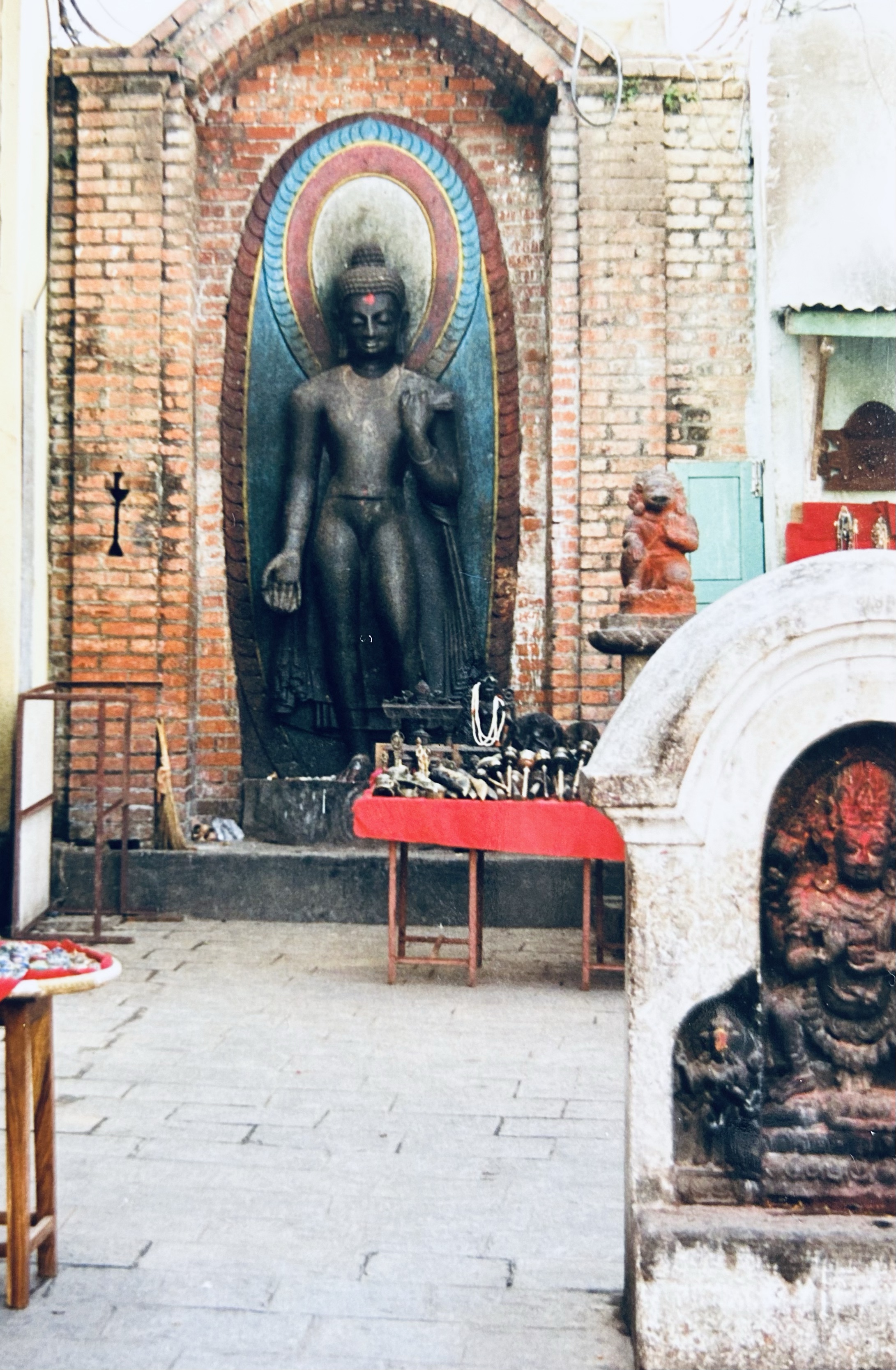 We then walked to Durbar Square, an area dedicated to idols and temples, which had become popular with the ‘60s’ migration of European hippies who traveled overland to Kathmandu. (Many of their left behind vehicles were still belching smelly, black pollution throughout the city.) Along the way we prayed against the many idols which we passed including the “toothache god”. I watched the people worshipping and noticed that their faces without exception were sad and empty.