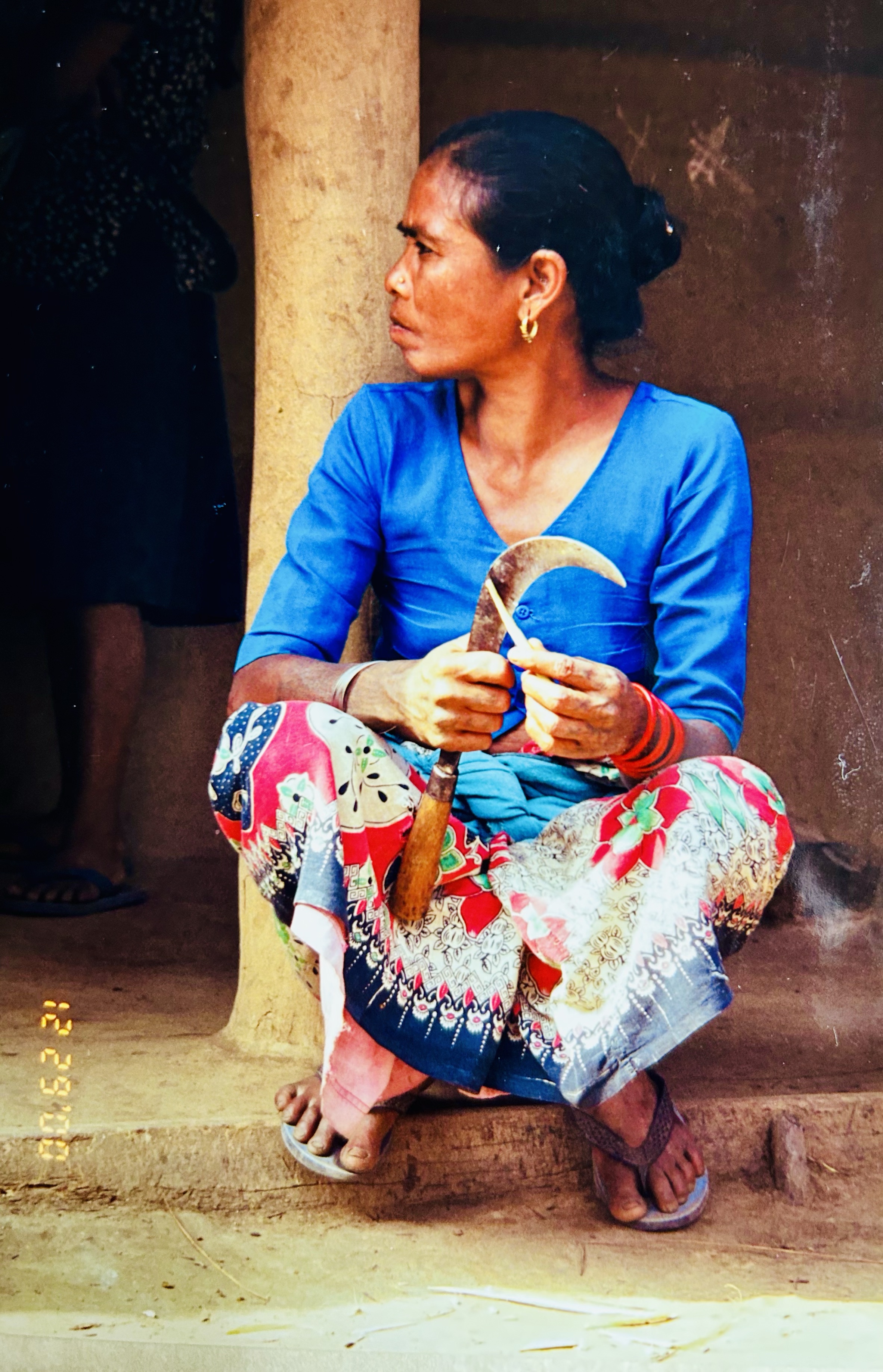 Back at the house we enjoyed lunch and from there we ladies along with a couple Nepali men (Most of the guys stayed for another night.) trekked back down to the road and from there traveled to a border town with India where we found a lovely guest house. It was built of wood and quite cozy. The wooden staircase to the second floor where we would sleep was .. disconcerting. In South Asia very often stair steps are not uniform. These steps’ risers were each of varying height and the tread shorter than my boots were long, so going down I had to turn my feet a bit to the side to keep from losing balance.